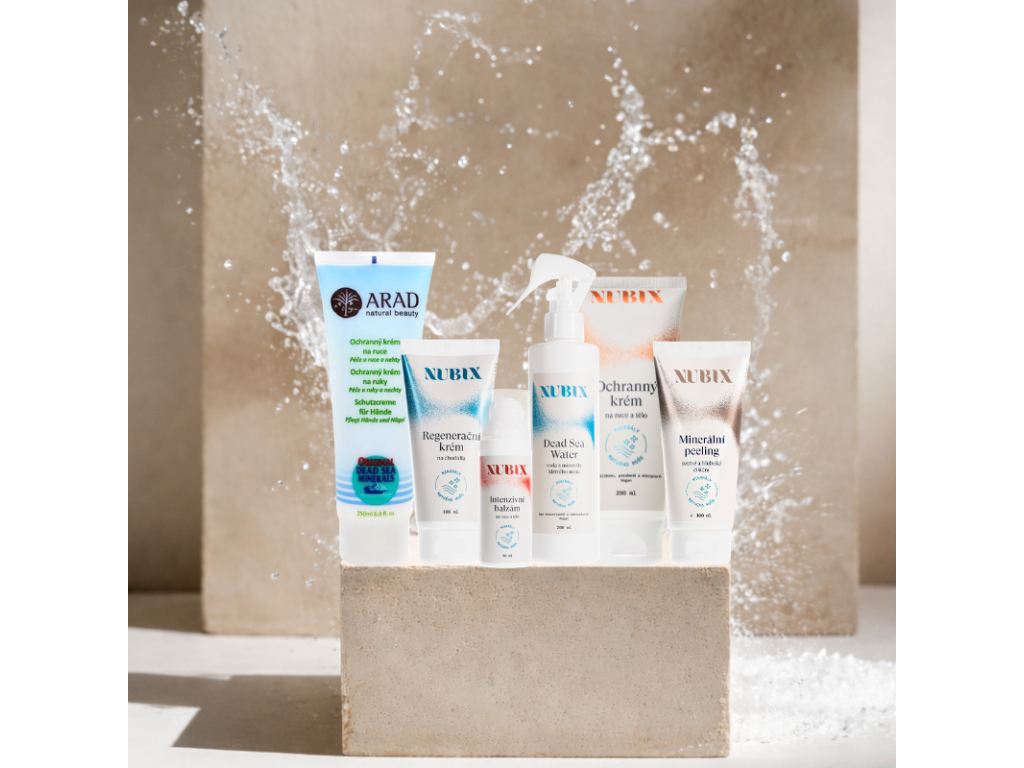 Aktuálně v nabídce najdete NUBIX Regenerační krém na chodidla, NUBIX Ochranný krém na ruce a tělo, NUBIX Intenzivní balzám na ruce a tělo pro hloubkovou výživu a NUBIX Dead Sea Water, čistou esenci léčivých látek z Mrtvého moře pro revitalizaci pleti i vlasů.